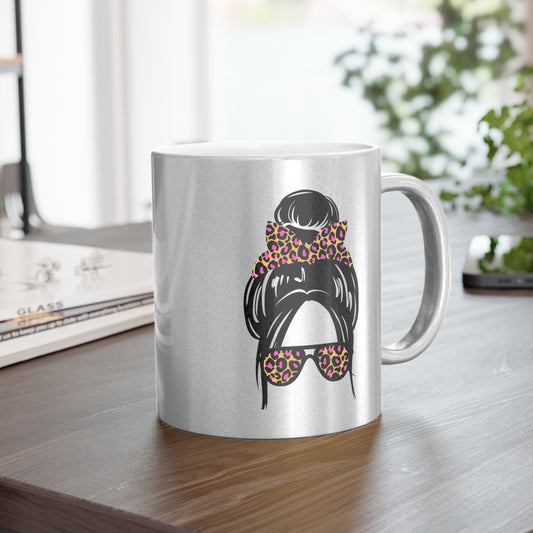 Stay Sassy Leopard Messy Bun Metallic Mug (Silver\Gold)