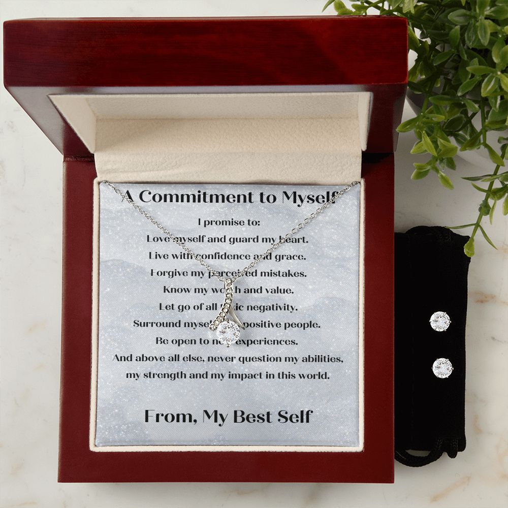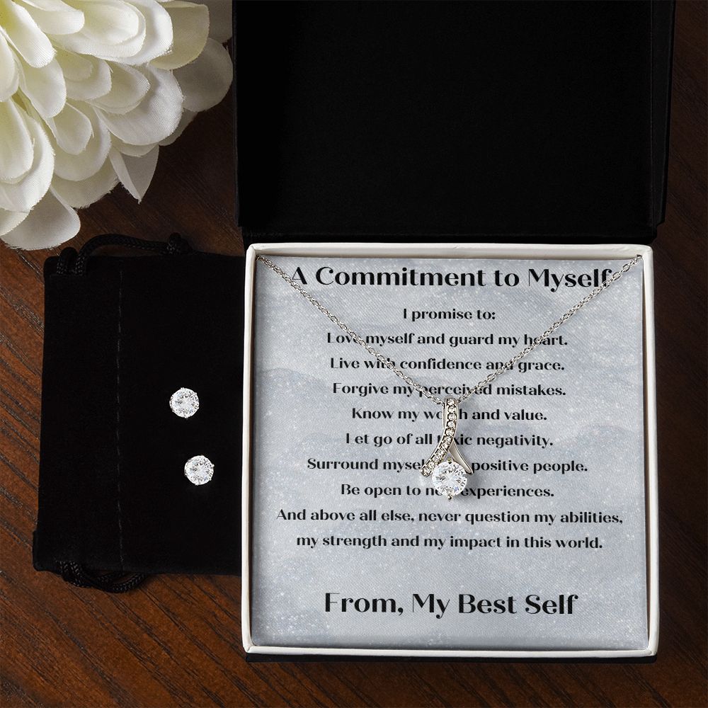 A Commitment to Myself Necklace and Clear CZ Earrings