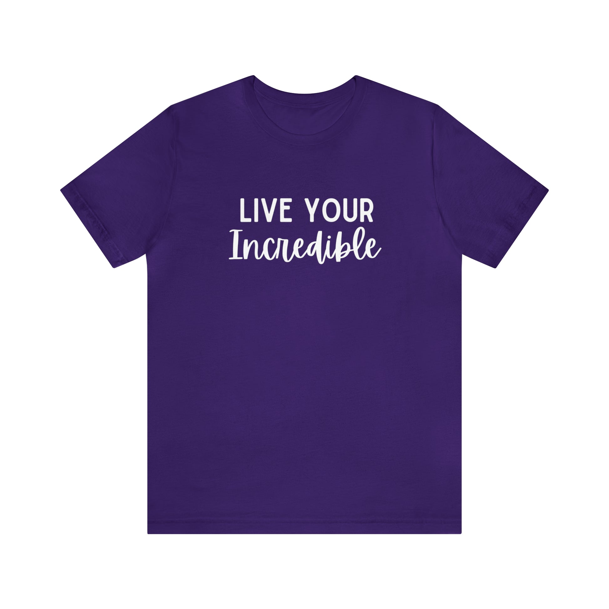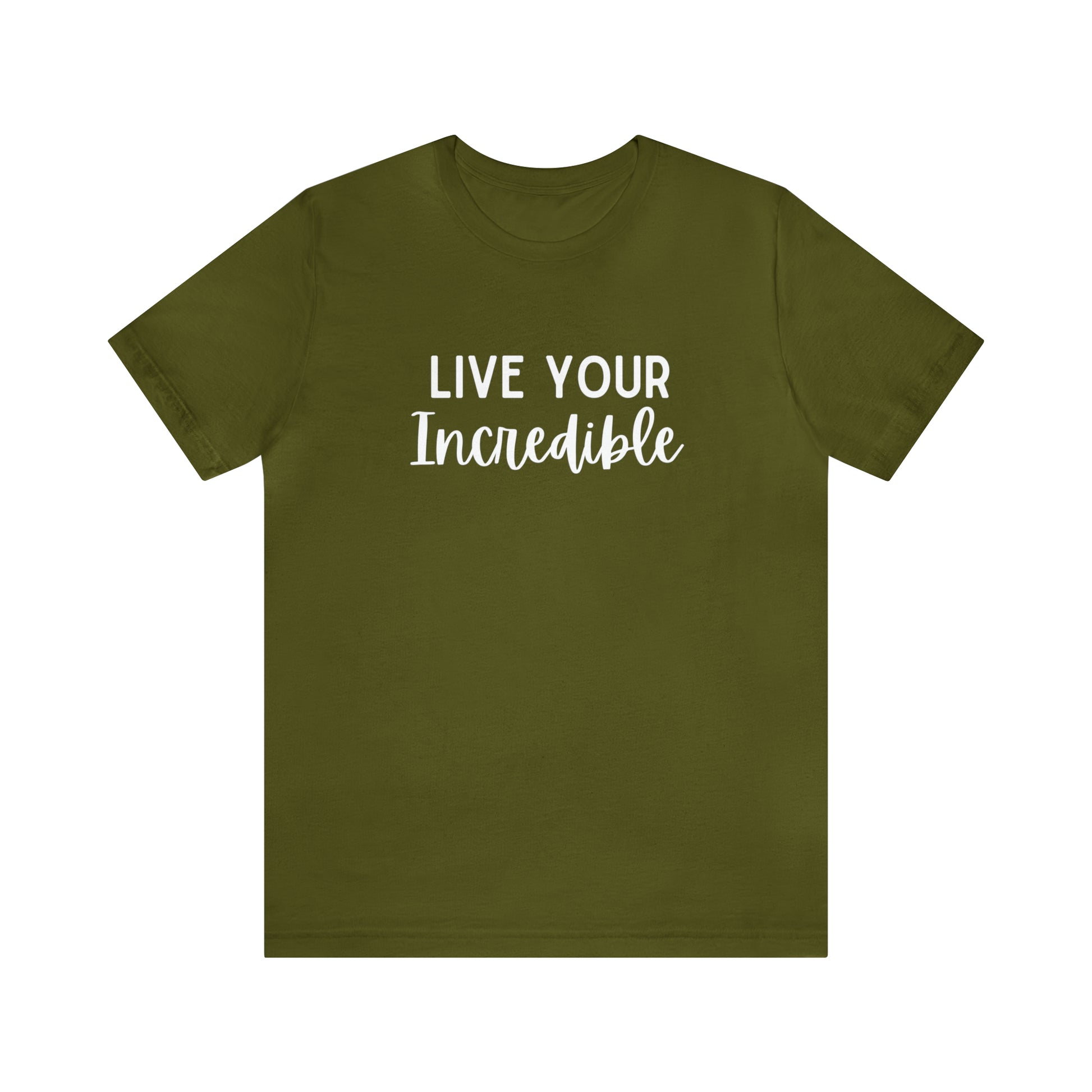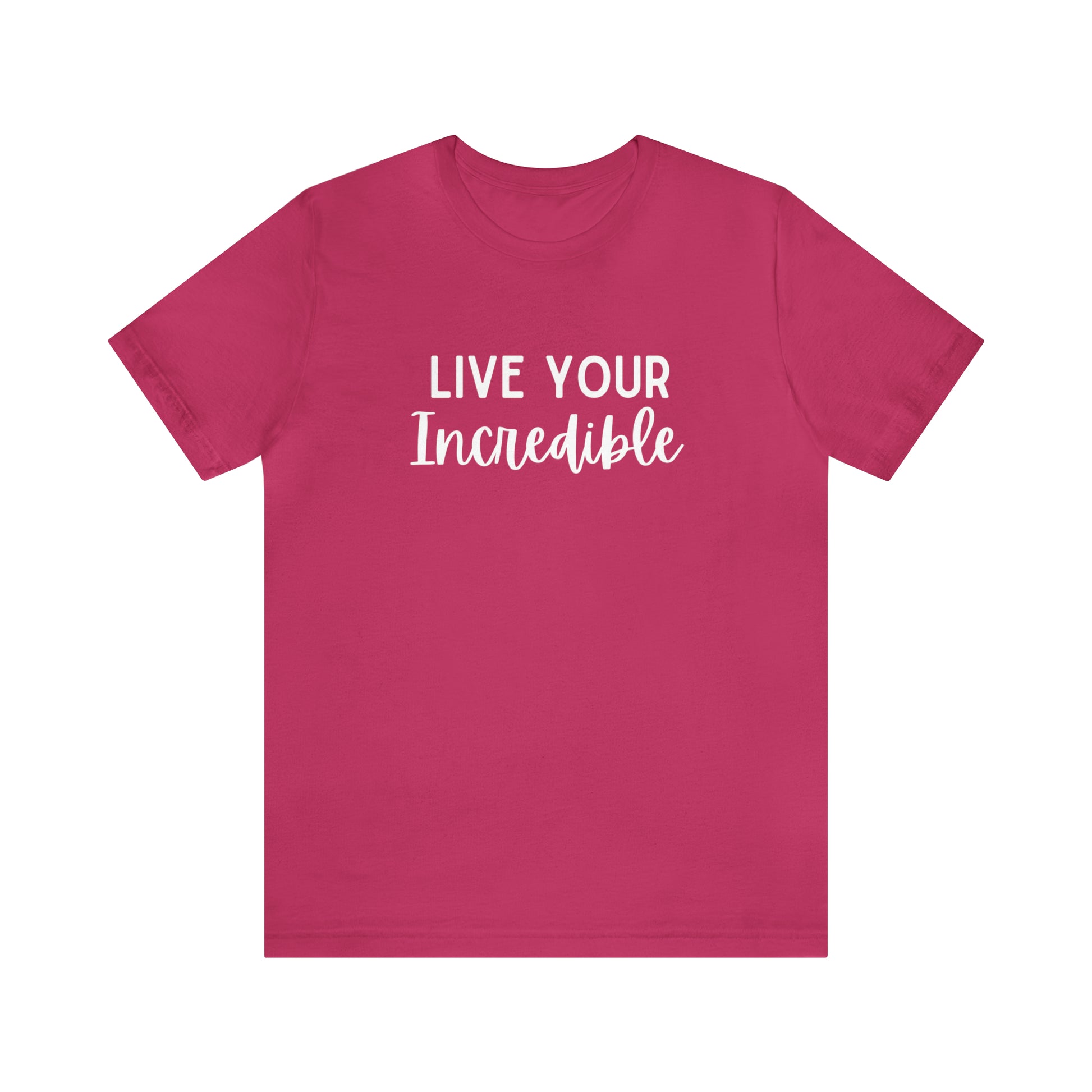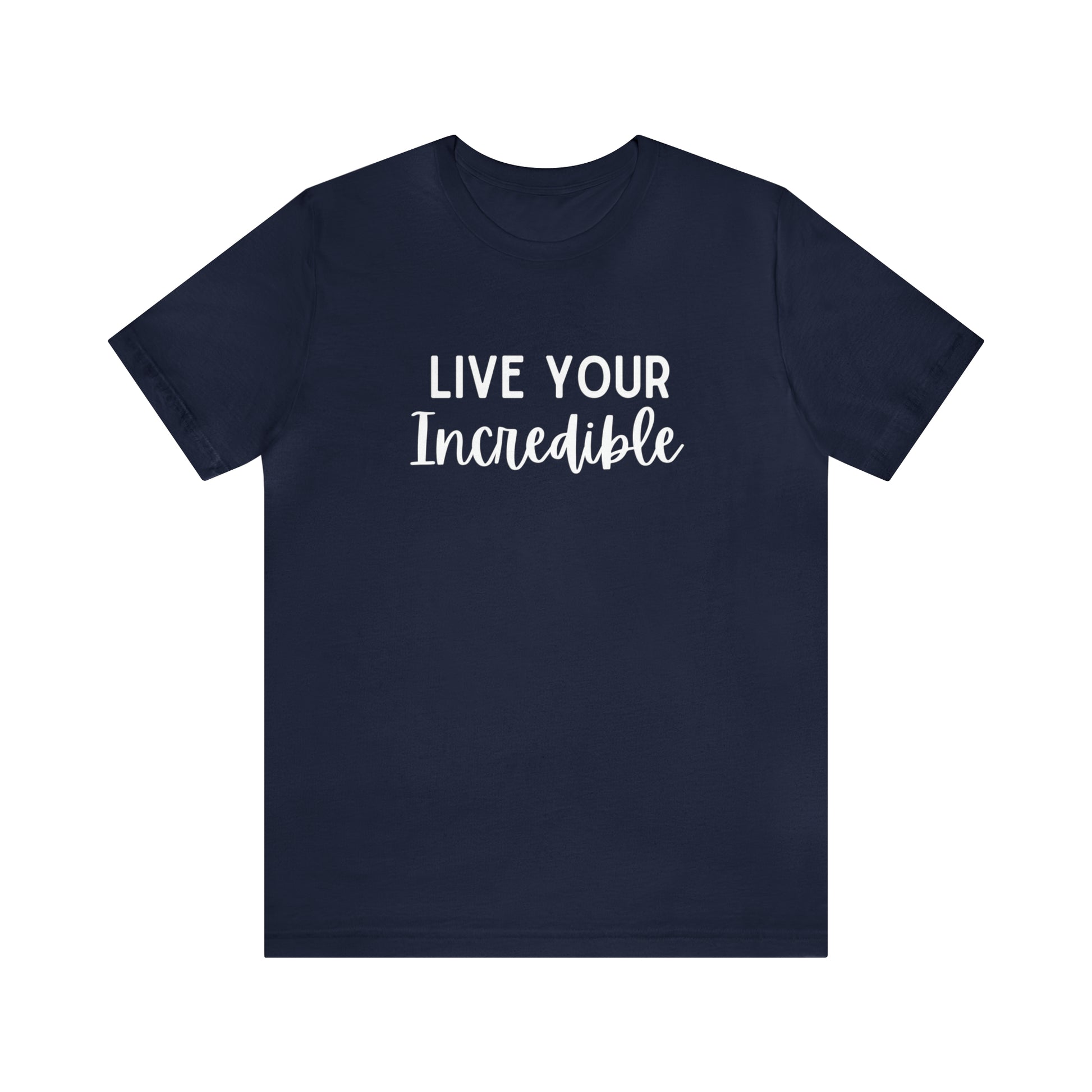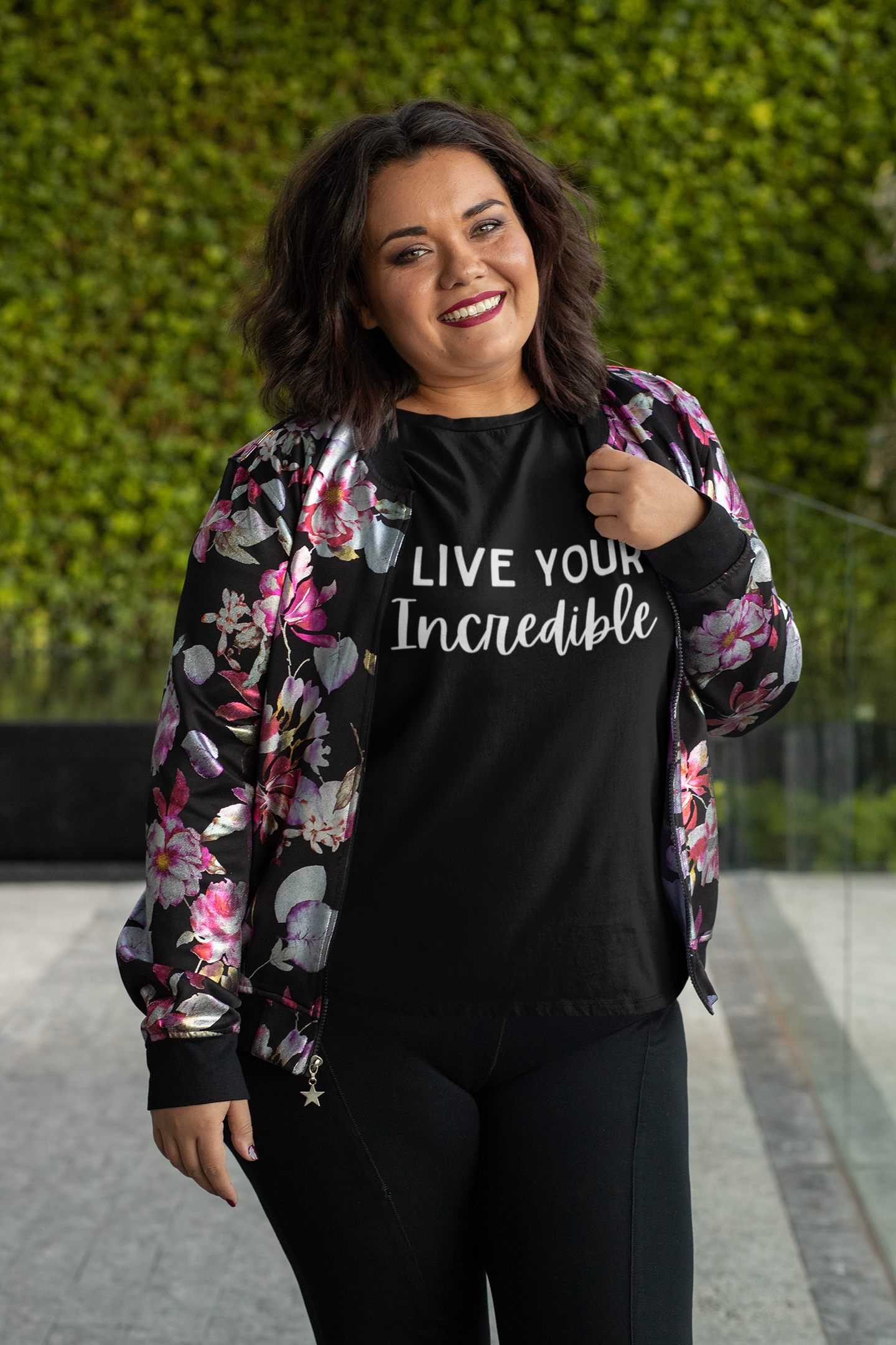 The phrase "Live Your Incredible" boldly emblazoned across the front is a testament to your fierce spirit and unapologetic confidence. It's a reminder that you don't just break barriers – you shatter them.