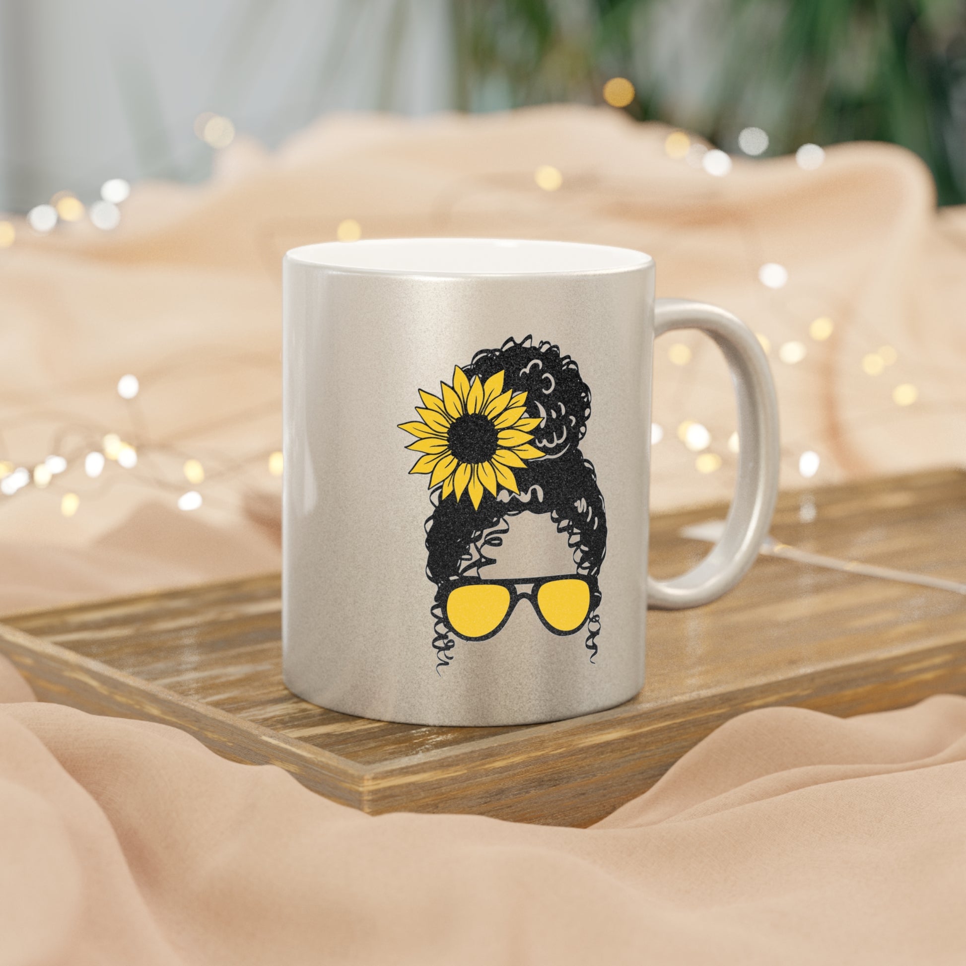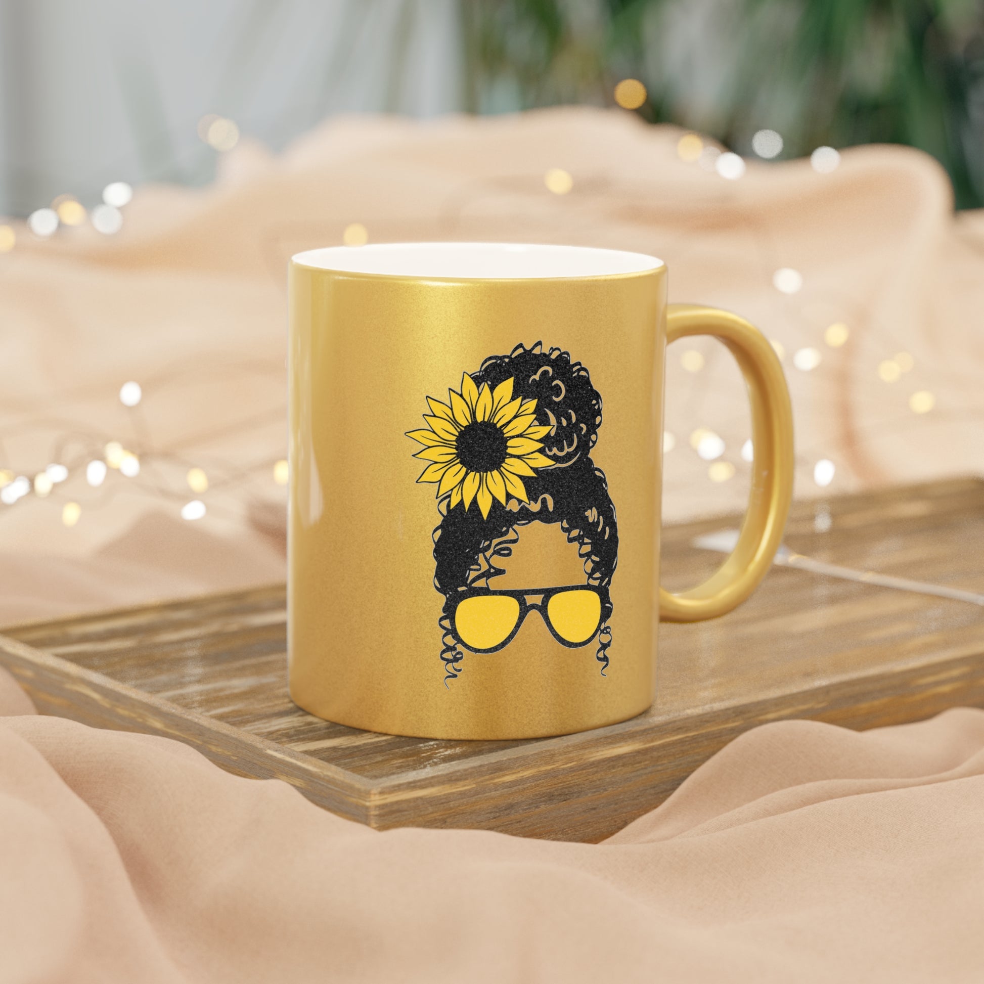 Stay Sassy Sunflower Messy Bun Metallic Mug (Silver\Gold)